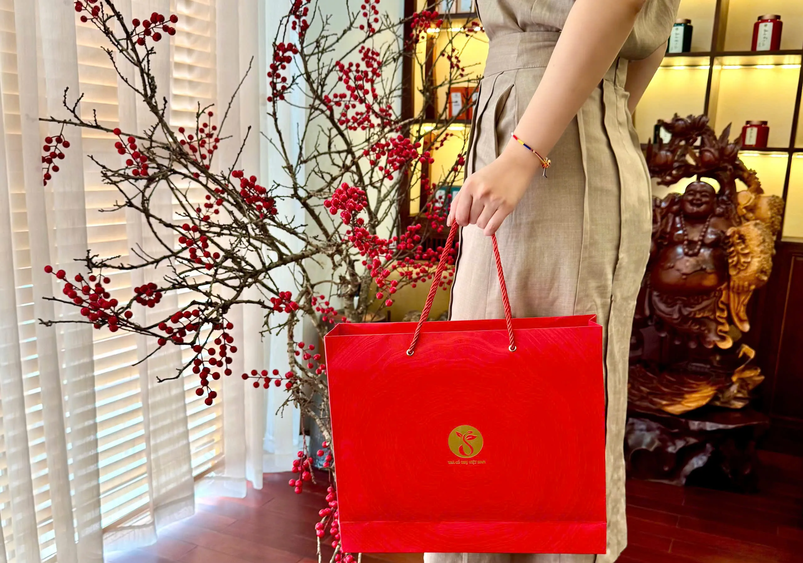 Ấn tượng ngay từ ánh nhìn đầu tiên, thiết kế hộp được lấy cảm hứng từ đường vân lõi cây, biểu tượng cho sự trường tồn, bền bỉ theo thời gian. Một món quà không chỉ đẹp về hình thức mà còn sâu sắc về ý nghĩa – như lời chúc gắn bó dài lâu, an yên và thịnh vượng.
