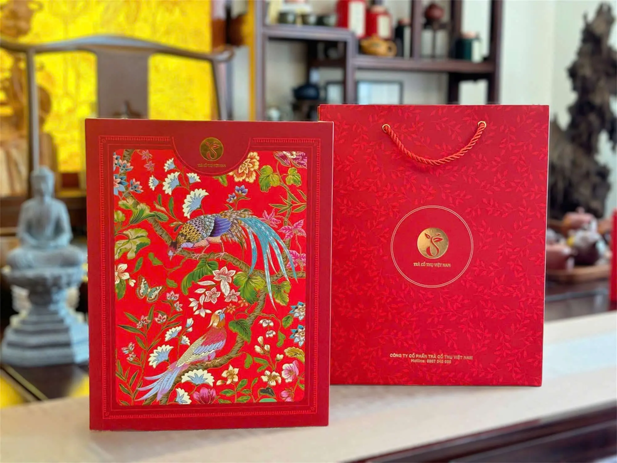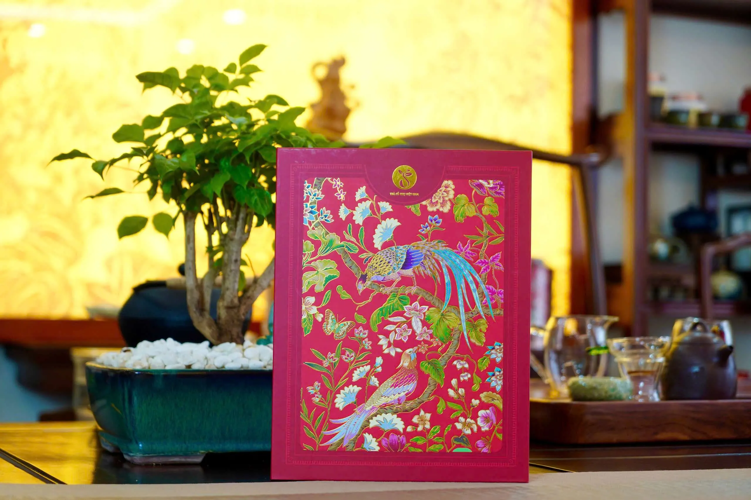 Lấy cảm hứng từ chim Khổng Tước – biểu tượng của phú quý, may mắn và quyền uy, hộp trà mang thiết kế tinh xảo với sắc đỏ và vàng kim nổi bật. Bên trong thiết kế đặt được 2 hộp trà. Thích hợp làm quà tặng cho đối tác, lãnh đạo, người thân trong các dịp lễ Tết, tri ân hoặc kỷ niệm đặc biệt.